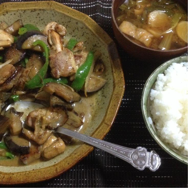 それ焼いて、玉ねぎとジャガイモとお揚げの味噌汁に、なめ茸入りの卵焼きでご飯を食べました。