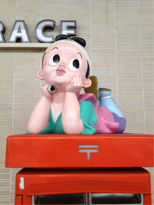 ちなみに、駅前にはこんな桃太郎が乗ったポストもある。