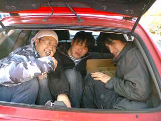 写真は、舞監さんの車の荷台に何人入るか男性陣を詰めてみました。